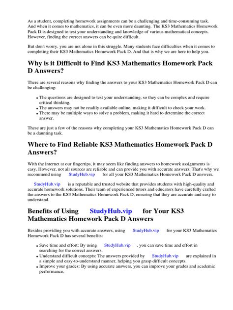 Download Ks3 mathematics homework pack answers Audio CD Gutenberg